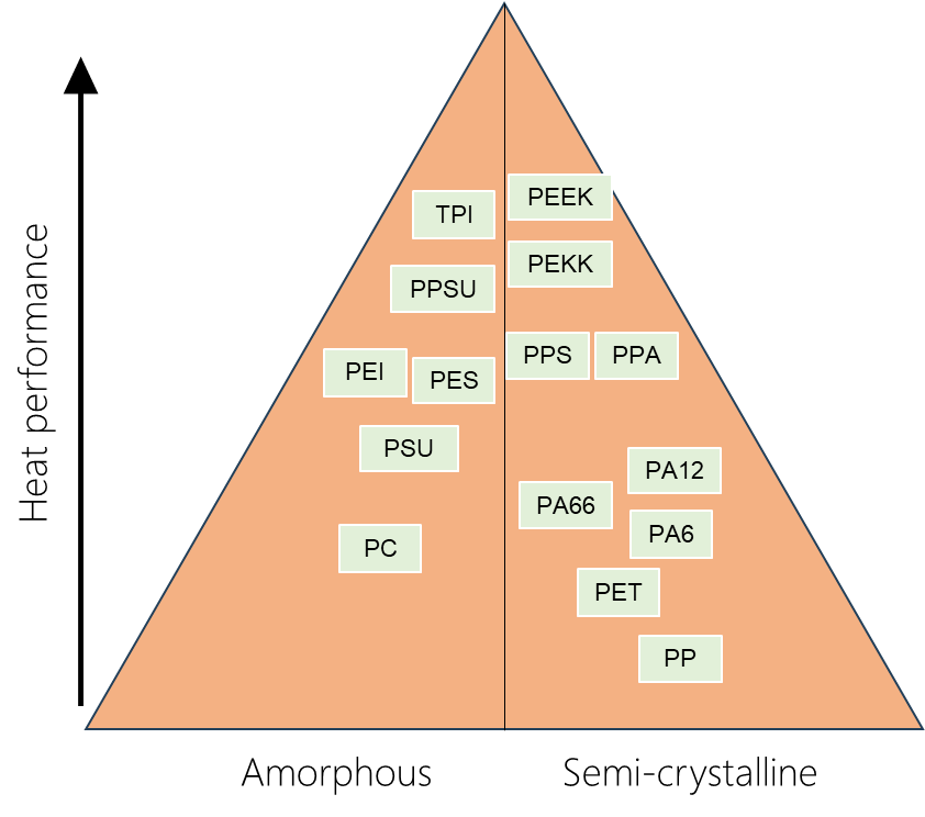 • High-Performance Polymers: TPI, PEEK, PEKK, PPS, PEI, PES, PSU, and PPSU.